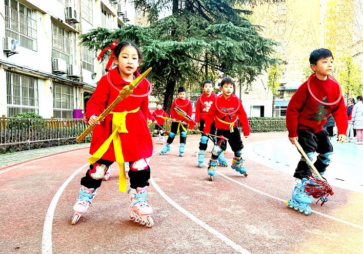当天,青山区新沟桥小学2025年“灵蛇起舞 逐梦启航”春季开学典礼在操场举行。动感十足的《哪吒闹海》表演,让师生们眼前一亮。只见十余名“小哪吒”脚踏荧光轮滑鞋,手持红缨枪,在舞台中央灵活穿梭,划出绚丽的轨迹。