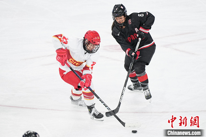 女子冰球比赛中。中新社记者 赵宇航 摄