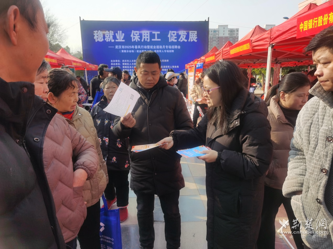荆楚网(湖北日报网)讯(通讯员 陈薇薇)2月13日,“春风行动”春风送岗促就业 精准服务暖民心——就业困难人员、退役军人专场招聘会在黄陂区横店街文体广场举行。黄陂区司法局横店司法所邀请律师一道走进招聘会现场,为众多企业及求职者送上新年“法治礼包”。
