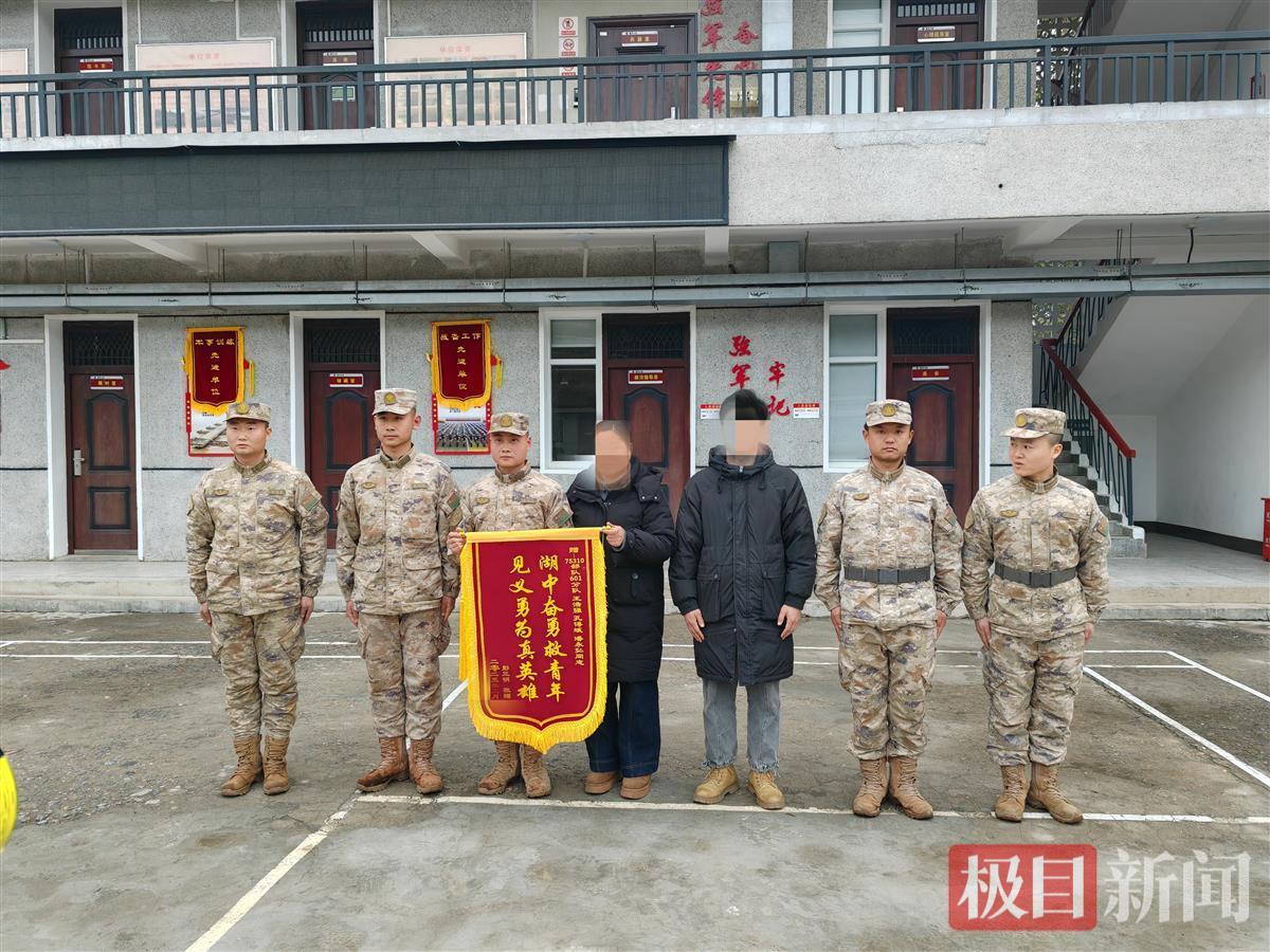 “要不是你们正好在附近,后果真不堪设想。”2月14日下午,黄石市民彭女士拿着锦旗来到中部战区陆军某部直属旅,向救起儿子的王浩强、孔得斌和潘永弘三名战士表示感谢。一天前,她儿子在黄石市磁湖跳水轻生,正在附近巡逻的王浩强三人飞奔上前,将她儿子救起。