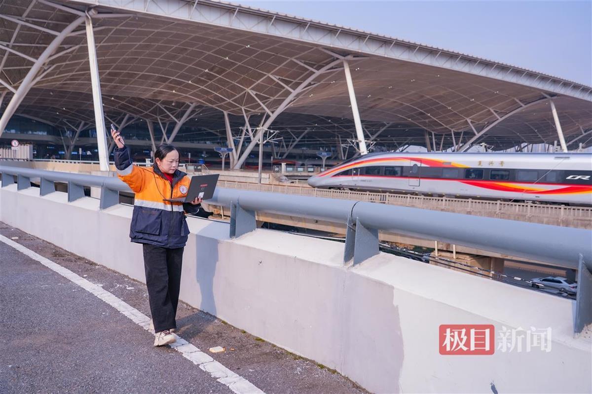 清晨,武汉通信段通信工訚芳华身着荧光防护服,动作娴熟地打开笔记本和测试手机,在武汉站附近开启了每日的无线信号巡检工作。她要确保高铁信号正常覆盖,为武汉站每列高铁的正常开行全力护航。