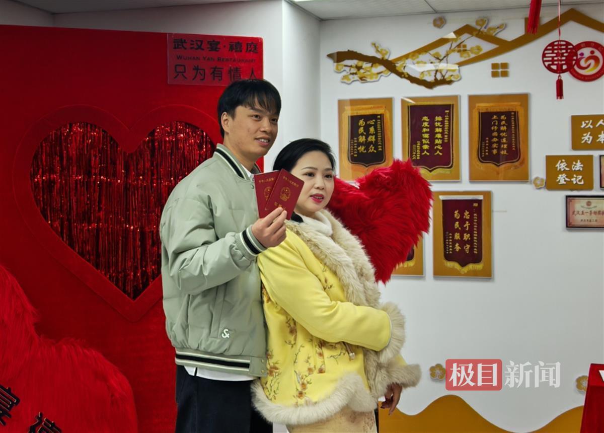 “元宵节和情人节接踵而至,婚姻登记处迎来新人们办理结婚登记的一波小高峰期。”江岸区婚姻登记处相关负责人告诉记者,为了应对这一登记高峰,江岸区婚姻登记处采取了“预约+现场办理”的双通道模式,并增设了服务窗口,以提升办理效率,确保每一位新人的“甜蜜需求”都能得到满足。