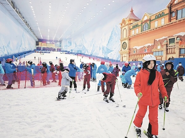 位于甘露山文创城的武汉城建热雪奇迹滑雪场,有6条不同难度的雪道,可满足不同年龄段滑雪爱好者的需求。“我在外地工作,这次趁假期带家人来玩。”黄陂人李先生说,“这里给我的第一感受就是大,很高兴看到家门口就有体验感这么好的滑雪场。”