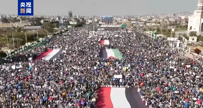 总台报道员 哈桑·巴姆沙姆斯:在美国总统特朗普发表有关驱逐加沙地带巴勒斯坦人的言论以及加沙地带停火协议执行受阻的背景下,萨那南部的一处广场再次举行集会,表达对特朗普言论的强烈反对。同时胡塞武装也做好了重新迎接军事冲突的准备。