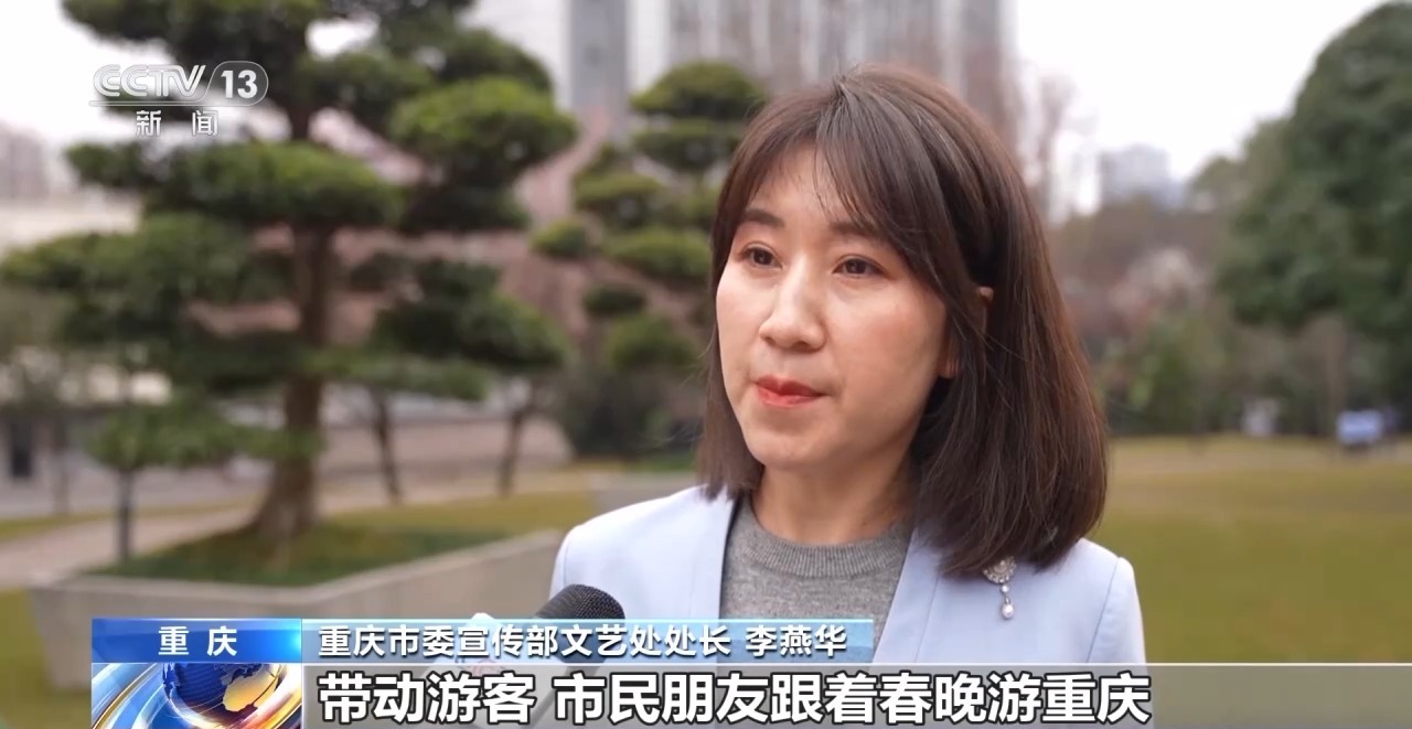 重庆市委宣传部文艺处处长 李燕华:希望通过持续半个月的表演,让大家把对重庆的喜爱、对春晚重庆分会场的喜爱延续下去,要把春晚流量转化为消费的增量,带动游客、市民朋友跟着春晚游重庆,促进文旅、餐饮等消费。