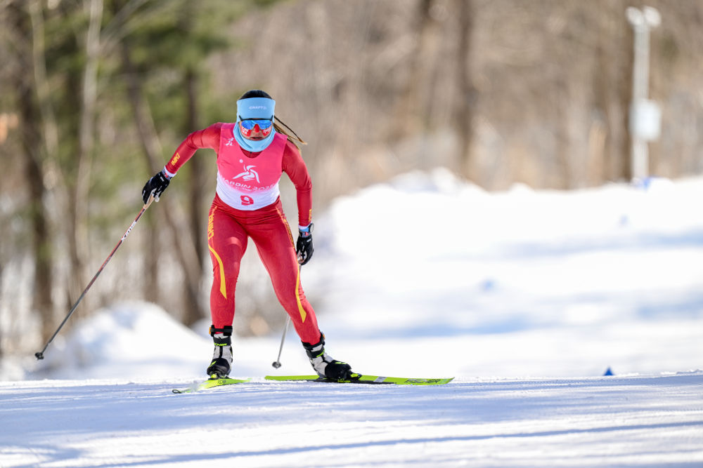 2月9日,中国选手巴亚尼·加林在第九届亚冬会越野滑雪女子5公里(自由技术)比赛中。新华社记者 连振 摄