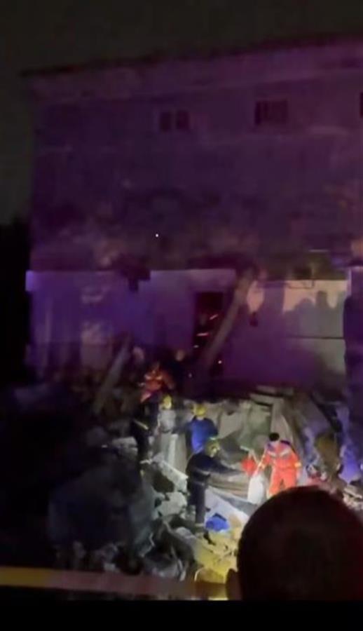 现场救援视频显示,消防员正在现场抢救,在瓦砾堆下搜救。