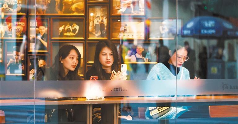 1月13日,顾客在位于厦门中山路的一家咖啡店休息。
