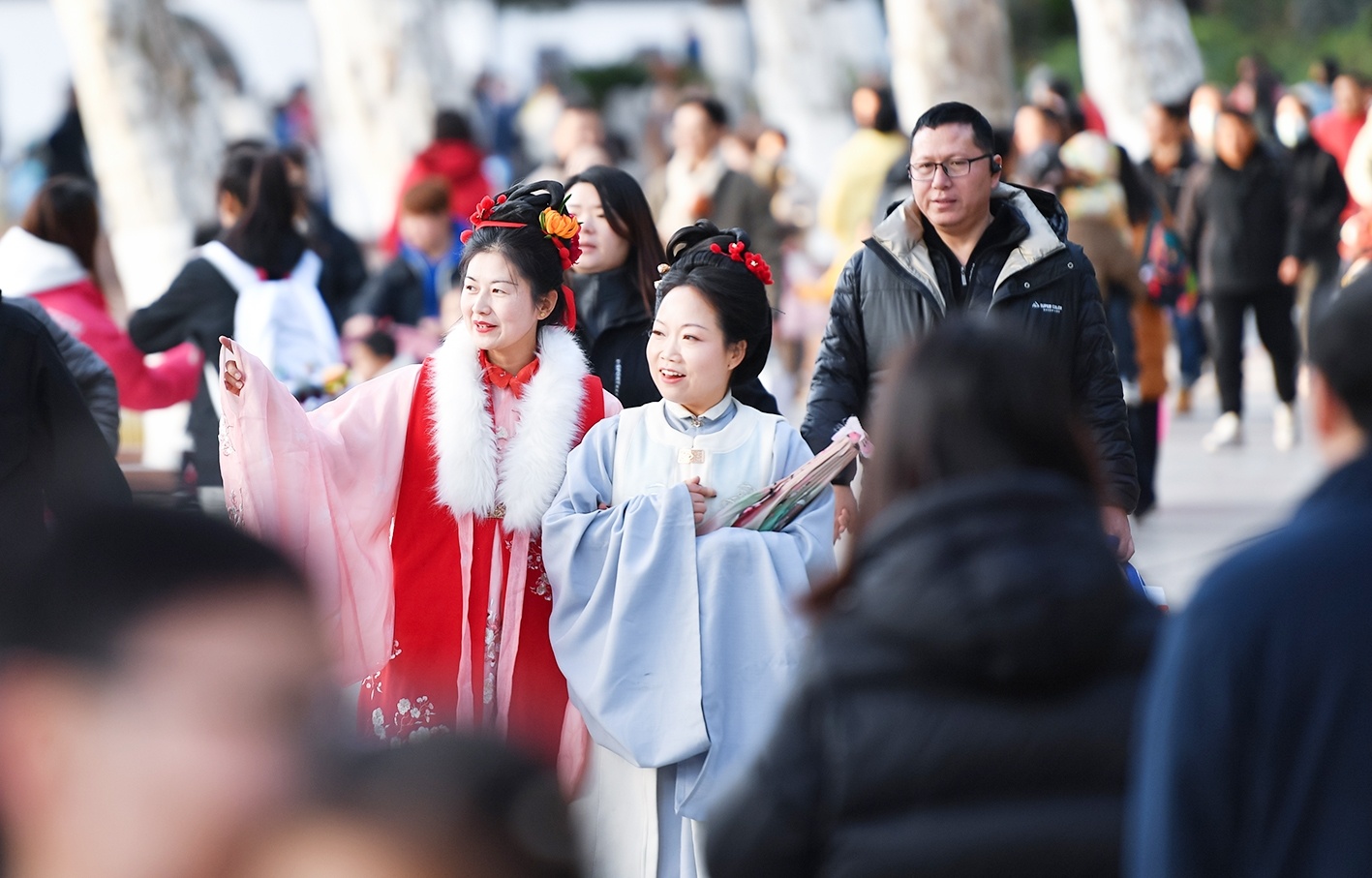 2月7日,冬日的阳光洒向武汉沙湖,在荡漾的湖水中泛起粼粼波光。身着汉服的杨薇在古色古香的房间里,细细端详刚完工的鱼灯。
