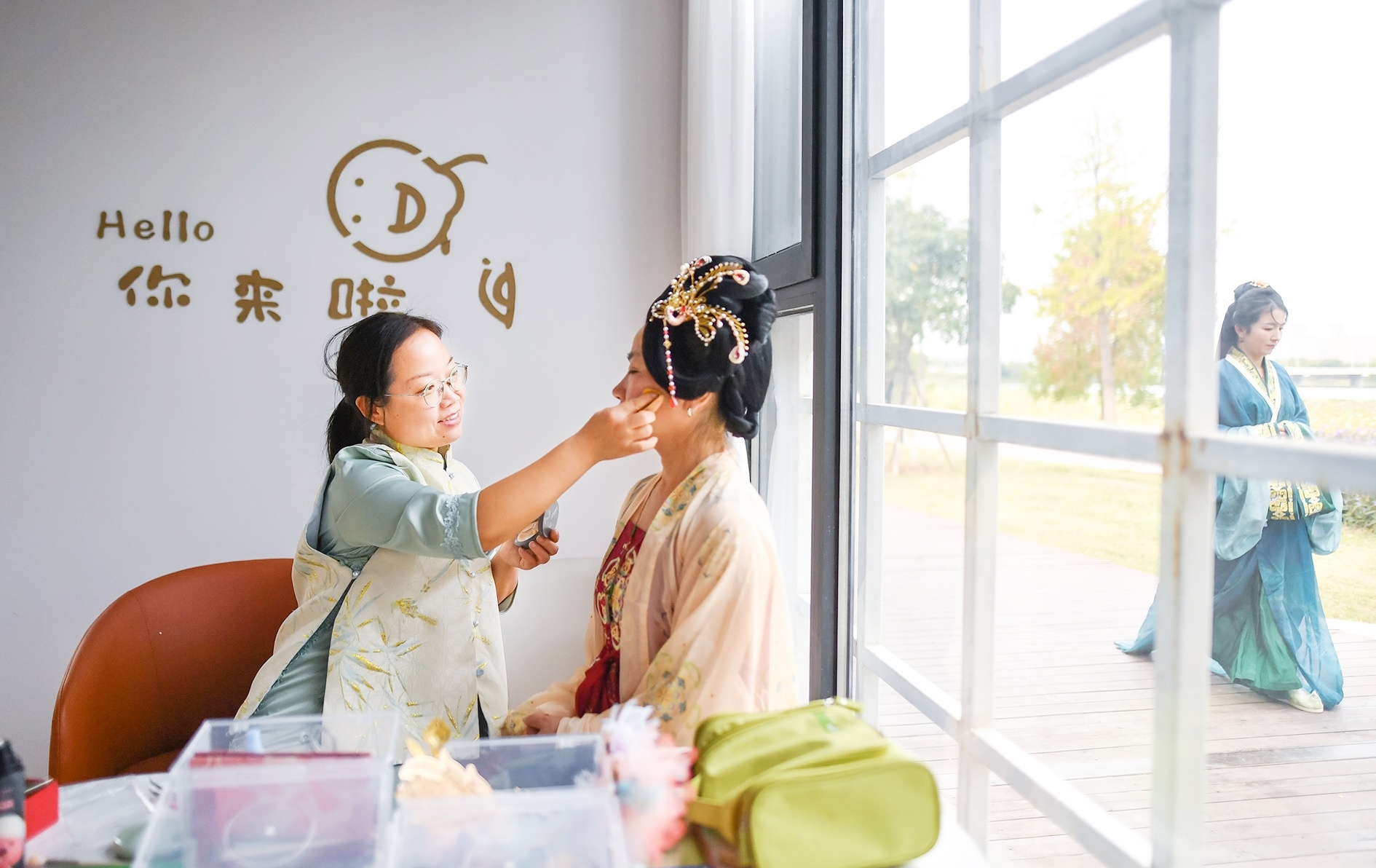 来自仙桃的80后杨薇,2010年定居武汉,随着时间的推移,她身上有多个与传统文化相关的身份:古筝教师、汉服社非遗手工讲师、汉服梳妆师。