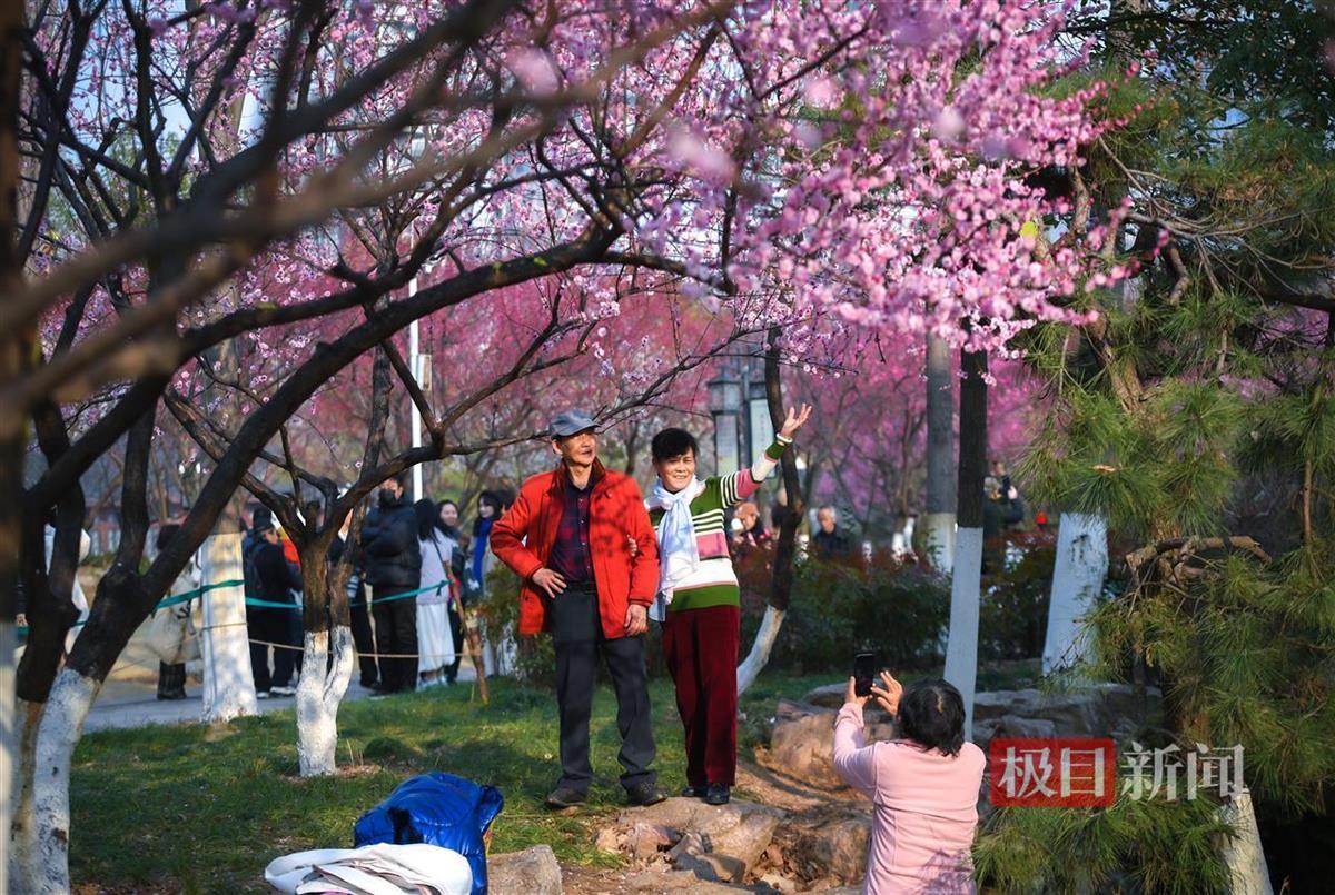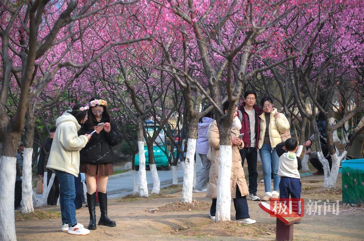 2月15日,武昌沙湖公园A区迎来了梅花绽放的盛景。红梅竞相开放,美不胜收,吸引了大批游客前来观赏。正值周末,公园内人头攒动,游客们纷纷在梅花丛中驻足,用相机或手机记录下这美好的瞬间。