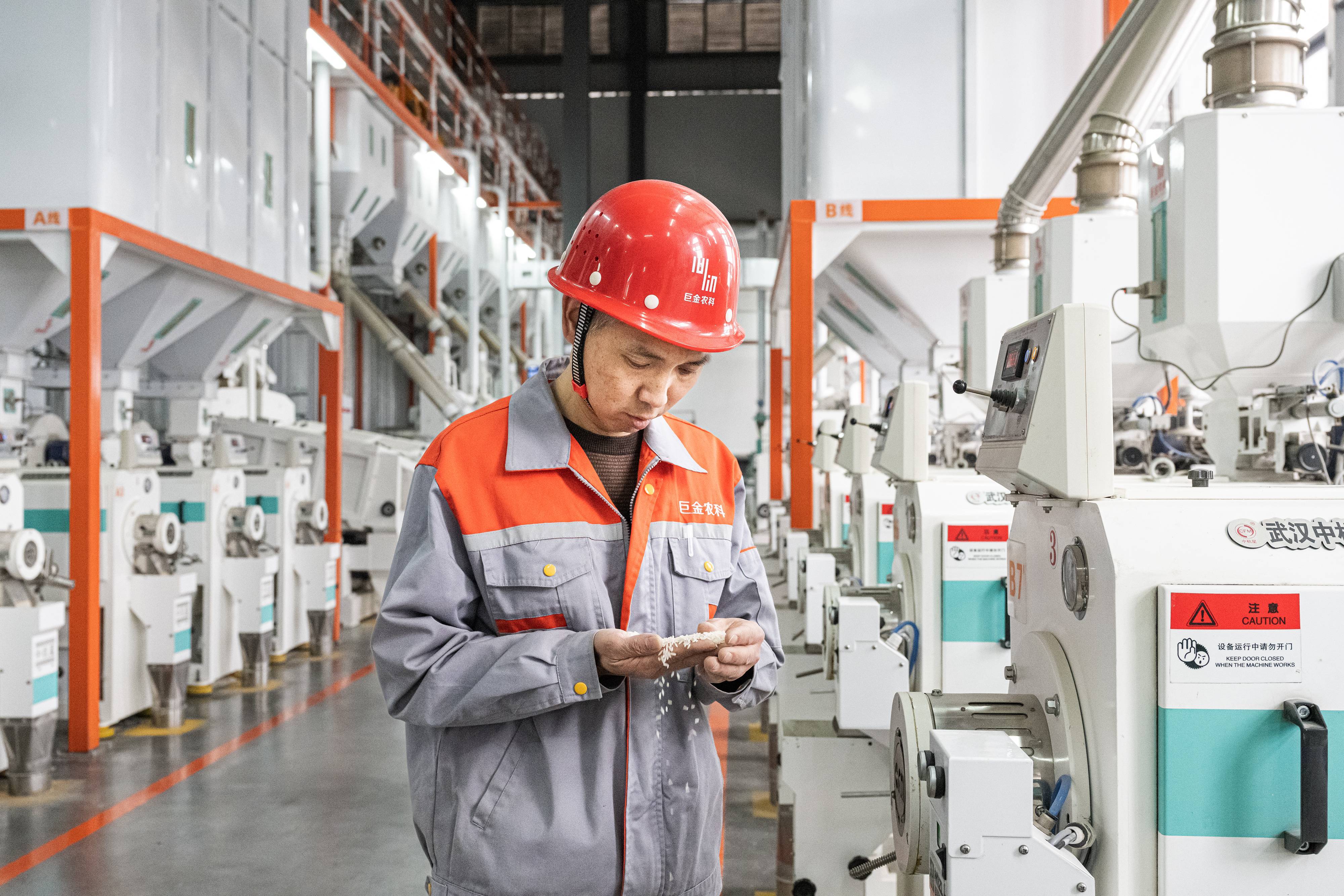 2月13日,位于潜江市的巨金米业有限公司智能生产线机器林立、轰鸣声声,一条条生产线,流畅运行,中控室“智慧大脑”屏幕前,数据跳动,生产进度一目了然。这也是潜江首家省级5G智能工厂,从原粮出仓到成品打包,整个生产过程实现高度自动化和智能化,1.2万平方米的车间,仅需3名工人即可有序运转,年生产加工大米能力从10万吨提升到35万吨。 (湖北日报全媒记者 任勇 摄)
