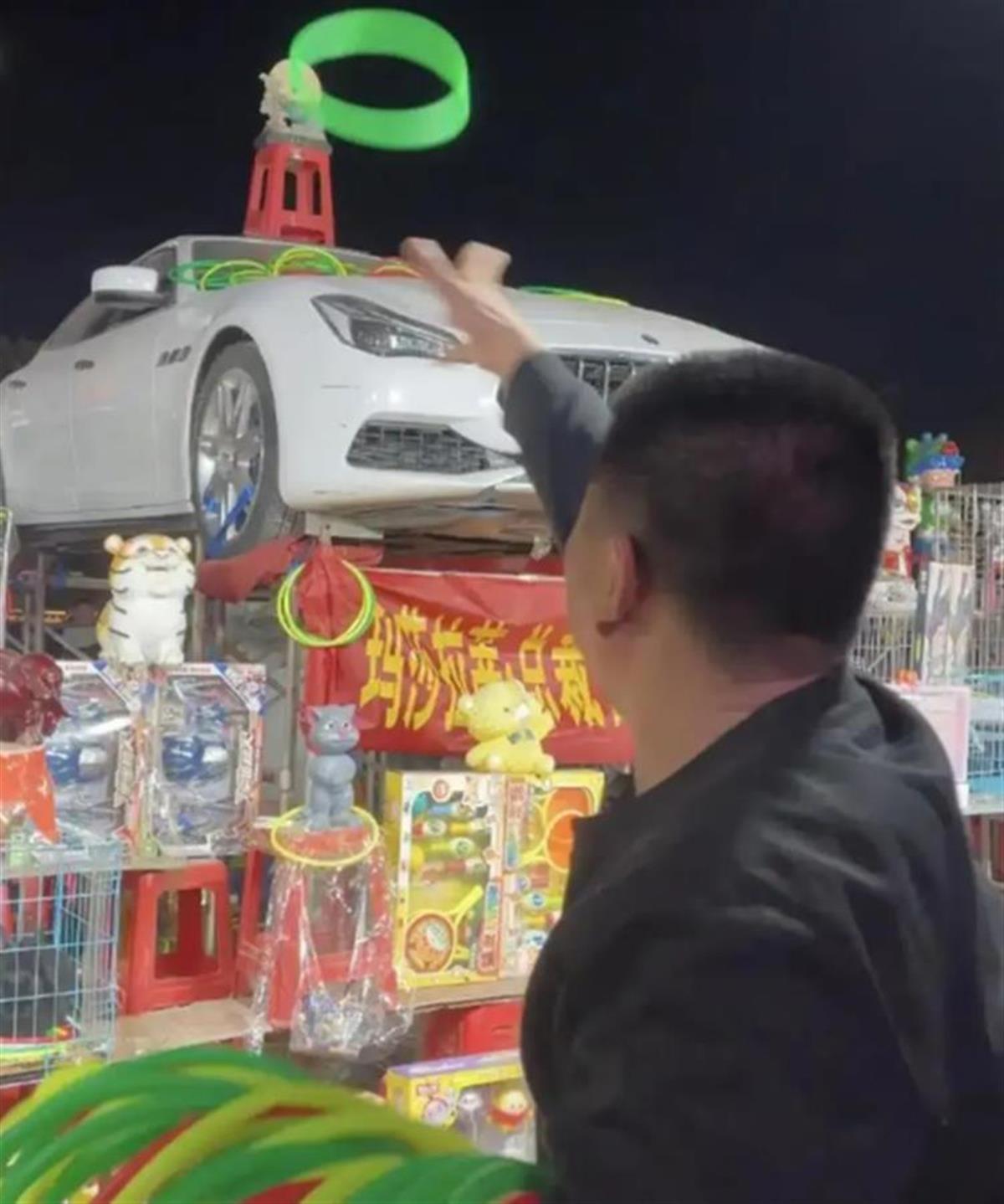 极目新闻2月6日曾报道,摊主常先生称这辆玛莎拉蒂是二手的,专为套圈而买。游客30元钱可以买40个圈,50元可买80个圈,套中车上的摆件就可将车开走。在2月15日,有消息称,这辆玛莎拉蒂被来自山东滨州的王先生花费2000元钱套中。