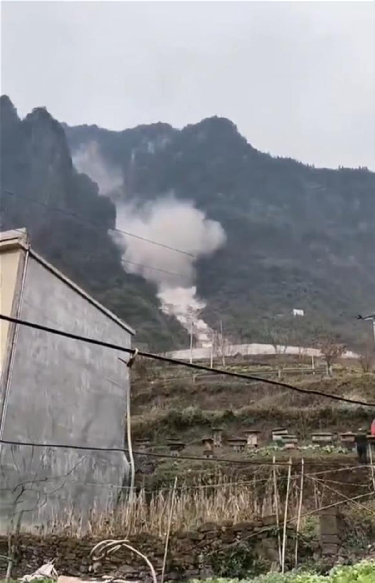 当地村民提供的视频显示,山体发生落石,烟尘弥漫。记者注意到,从去年2月开始,就有该村村民在社交平台上发布山体落石垮塌的视频。一位村民在视频中称,天天都有石头掉下来,白天听到声音就跑出门,晚上不敢踏实睡觉。