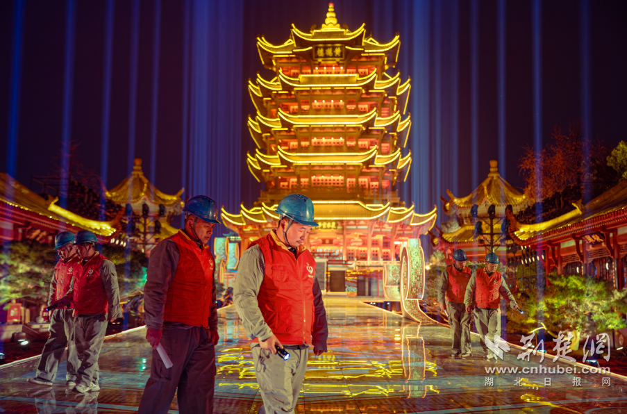 国网武汉供电公司员工在黄鹤楼分会场巡检。摄影 张恒