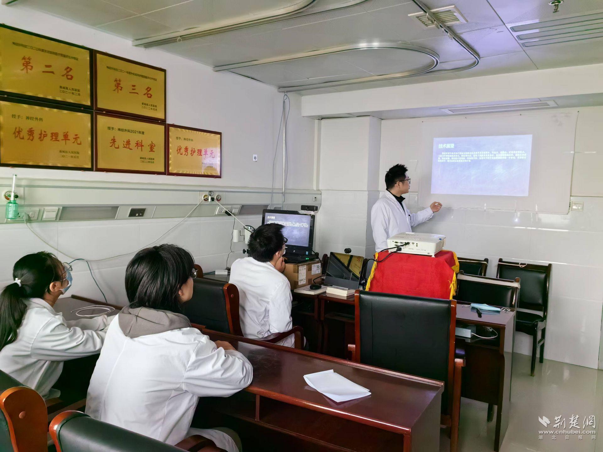 荆楚网(湖北日报网)讯(记者 邱玲鹏 周光洁)“您今天感觉怎么样?”在咸宁市通城县人民医院神经外科病房里,吴忠祥医生轻声对病人问道。作为医院神经外科主治医师,吴忠祥每天都会重复这样的场景:查看患者恢复情况、调整治疗方案、与家属沟通病情。他的脚步永远匆忙而坚定,眼神永远专注而温暖,他用精湛的医术和仁爱之心,为无数患者点燃了生命的希望之光。