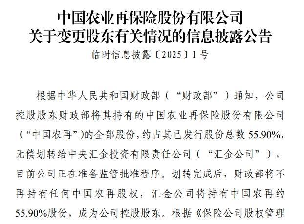 近日,中国信达、中国东方资产、中国长城资产、中国农业再保险股份有限公司相继发布公告,控股股东财政部拟将其持有的股份无偿划转至中央汇金公司。