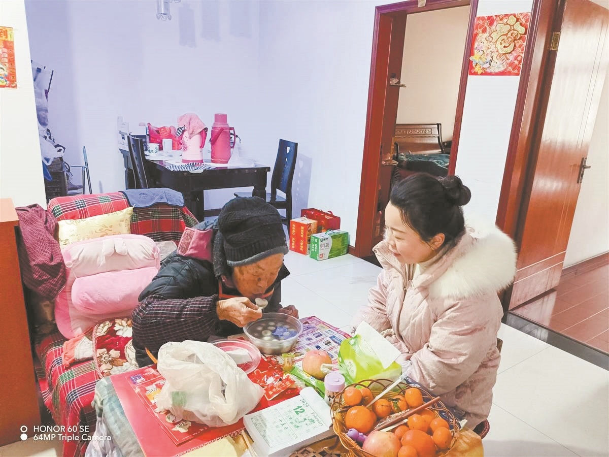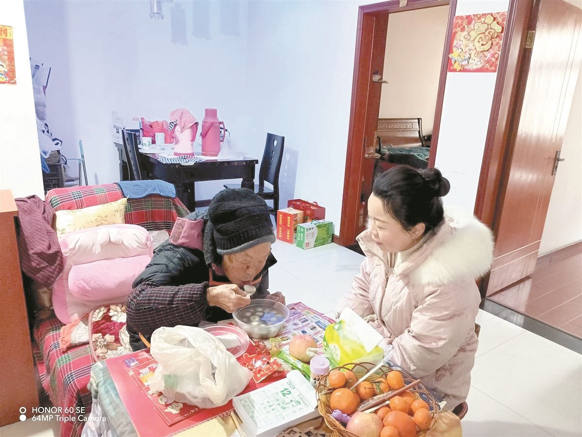 赵锁梅给老人送汤圆 楚天都市报极目新闻记者梁传松摄