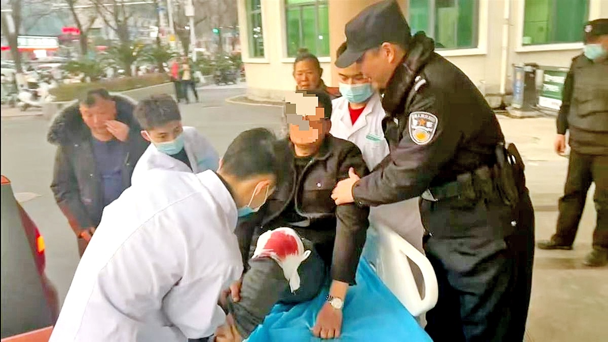 民警以最快的速度将伤者送至医院 通讯员供图