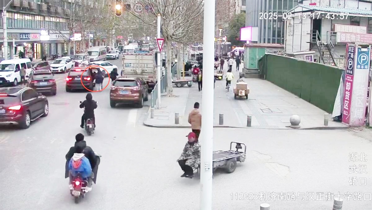洪女士停车救人 监控截图
