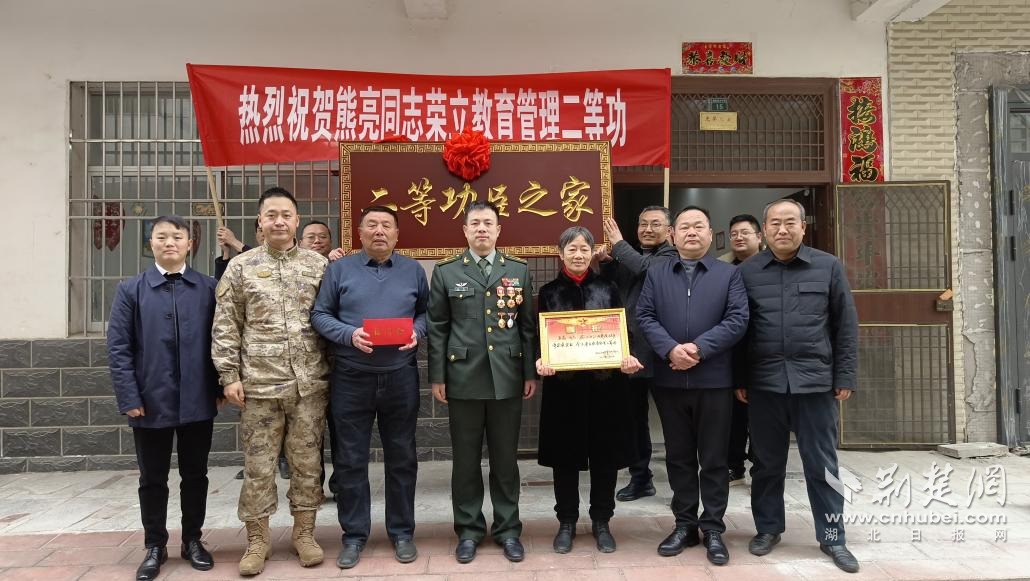 荆楚网(湖北日报网)讯(通讯员常梦星)“看到我家孩子在部队干得这么好,真为他感到自豪!”2月17日,麻城市人武部、麻城市退役军人事务局联合经济开发区,到陡坡山社区为现役军人熊亮家庭送上“二等功臣之家”牌匾及奖励金,让军人军属共享尊崇荣光。