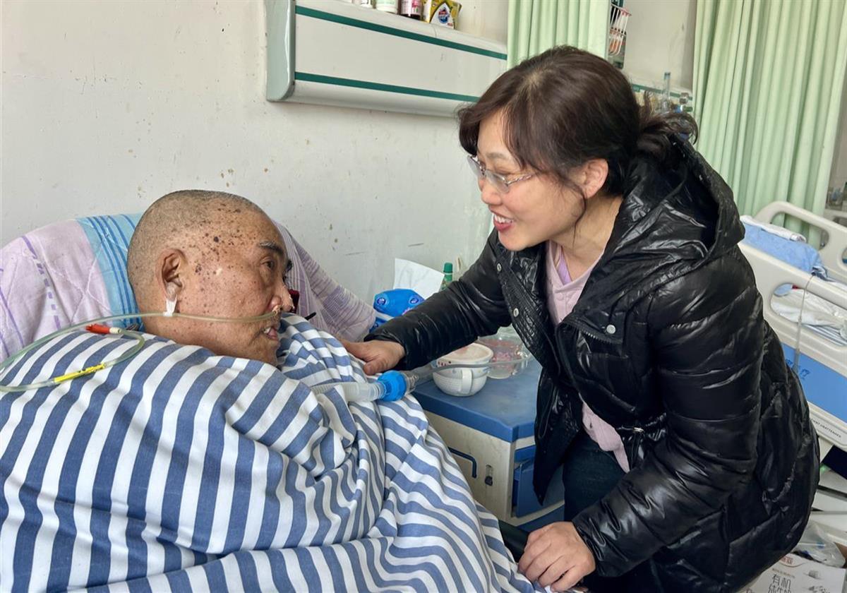 听说按摩有助于康复,叶俊丹就向按摩师求教,自学按摩技法,每日为父亲进行全身按摩。捏腿、拍背、搓手……叶俊丹掌握的护理技能越来越多,一有空,她就陪在父亲身边,为他唱歌,讲笑话,想着法子让父亲开心。