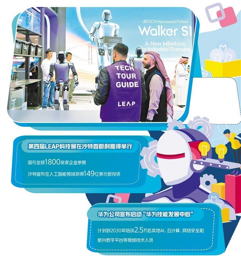 近日,中东地区最大规模的科技盛会沙特阿拉伯电子科技及信息技术展(LEAP)在沙特首都利雅得举行,今年为第四届。该活动由沙特通信和信息技术部,沙特网络安全、编程和无人机联合会等部门和机构联合举办,主题为“迈向新世界”,吸引了全球1800余家科创企业参展。沙特通信和信息技术大臣阿卜杜拉·苏瓦哈在开幕式上表示,通过本届展会,沙特在人工智能(AI)领域获得了总额达149亿美元的新投资,彰显了沙特在塑造全球数字化未来进程中的重要地位。