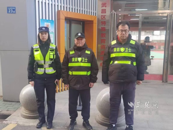 社区安保队员与黄鹤楼派出所民警组成“护学岗”。 通讯员供图
