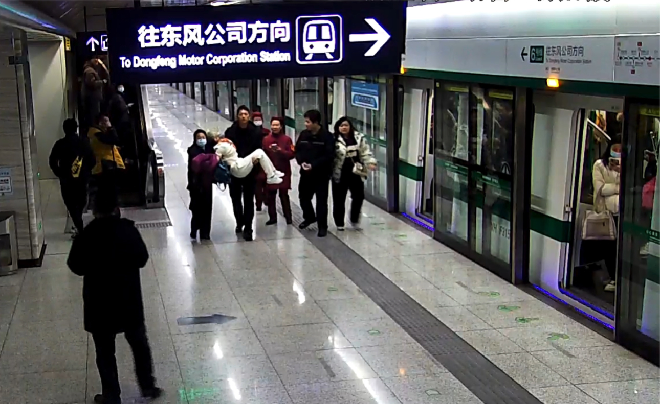 荆楚网(湖北日报网)讯(记者 白云 通讯员 张建勇)2月12日晚18时许,地铁6号线临近前进村站时,一位年过七旬的老婆婆突然仰面倒在地板上,疑似休克,情况紧急。