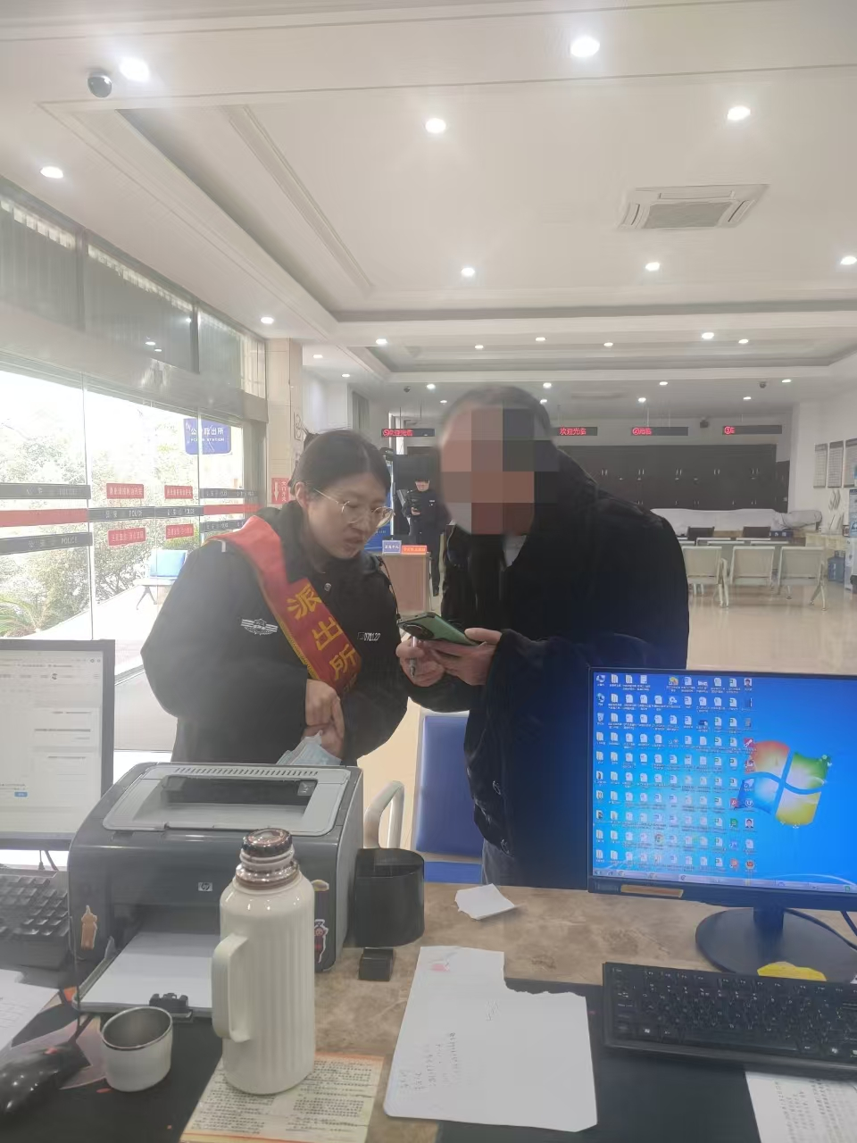看到办事大厅警情繁忙、人员众多,老大爷十分焦急,此时正在前台接待的引导员、辅警吴娟主动上前询问。“大爷,您有什么事情可以跟我说,我看能不能先帮您处理?”杨大爷立即上前抓住吴娟的手,“警察同志,您一定要帮帮我,我被骗了800元钱,请一定要帮我找回来!”“您先别急,把详细情况和我说一下。”吴娟一边安抚杨大爷的情绪,一边扶他坐下,并给他倒了一杯热水。