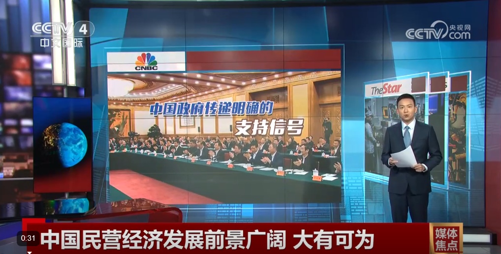 美国消费者新闻与商业频道:中国政府传递明确的支持信号