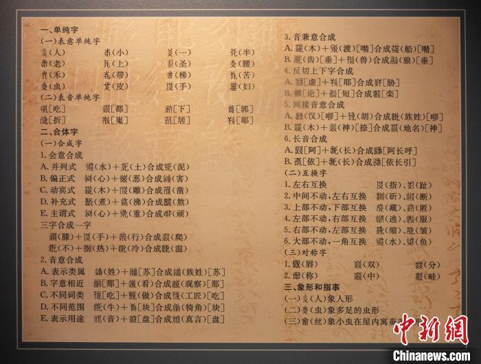 西夏文字构造举例。 中新社记者 杨迪 摄