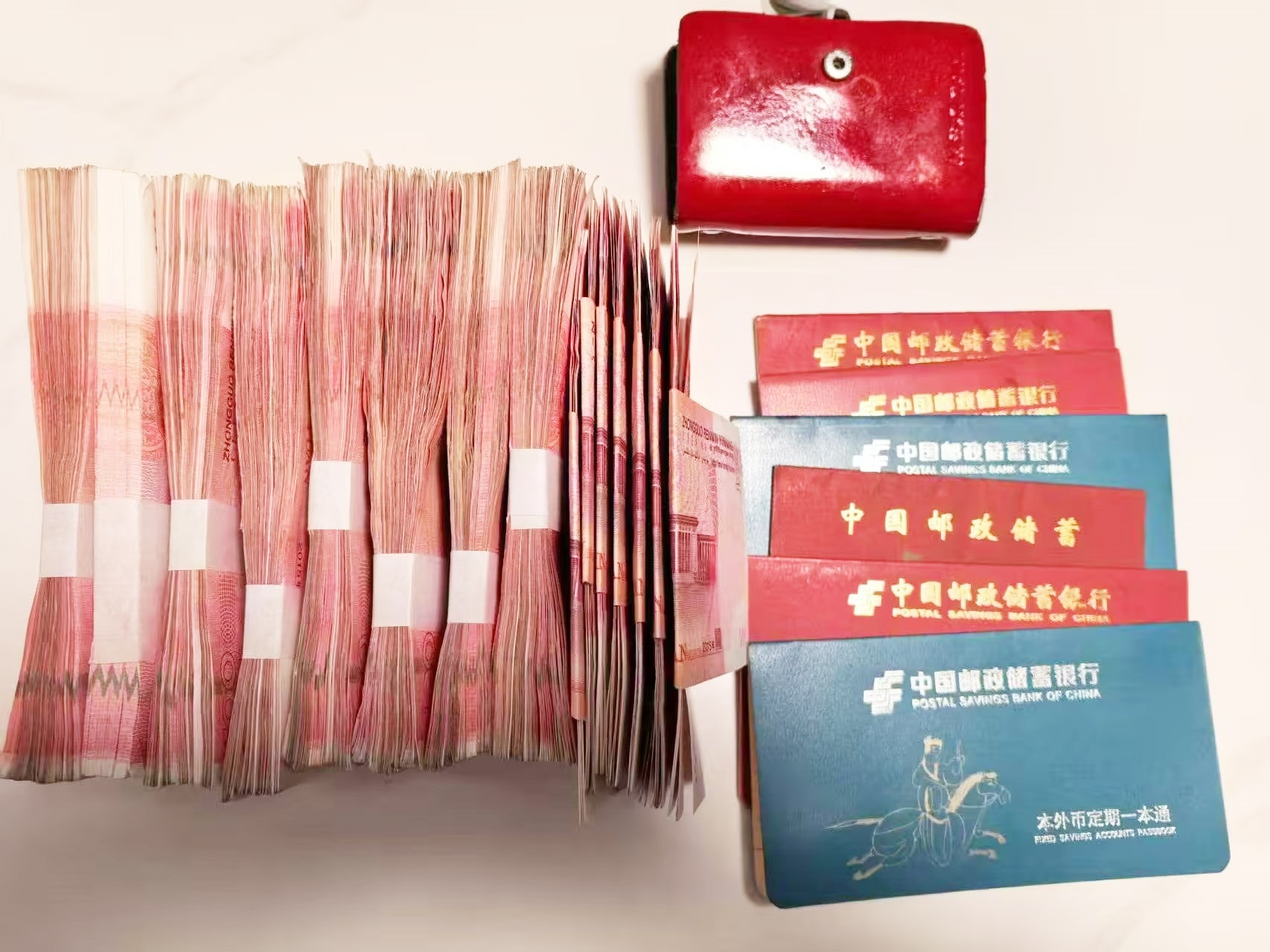 收到公交部门提供的车载录像,警察调看车站附近的城市监控,没花多长时间就找到了顺走巨款的女子。在民警的努力下,梅女士8.7万余元现金、存折、若干证件等财物完璧归赵。认领失物后,梅女士夫妇喜极而泣。