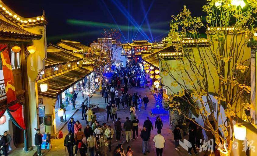 楚王城公园的9大新春文旅场景同样魅力非凡,吸引了30余万人次游客。公园内人头攒动,热闹非凡,游客们一边欣赏着美丽的花灯和“楚王天下”大舞台精彩绝伦的表演,一边品尝着各种特色美食。元宵节,公园更是人山人海,高达10万余人,人们赏花灯、猜灯谜、看表演,共同庆祝这团圆的节日。