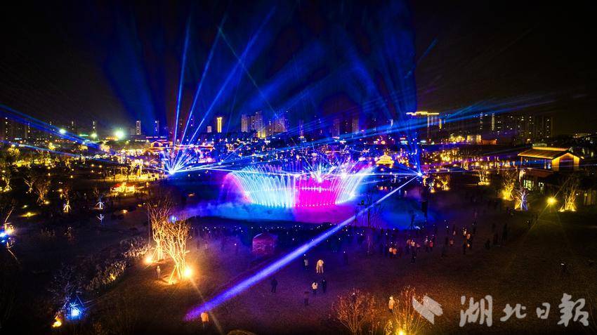 获批全省100个“打卡”地标项目的楚王城公园,推出“赏花灯 观演艺 品美食”新春文旅场景,令人眼前一亮。22种创意花灯造型各异,将公园装点得如诗如画,一步一景,皆是浓郁的节日氛围。特色高空表演惊险刺激,表演者精湛的技艺让人惊叹不已;光影水秀如梦如幻,灯光与水幕交织,打造出震撼的视听效果。这些精彩表演与中华简牍文化、古泽家书文化深度融合,为游客带来了一场视听与文化的双重盛宴。