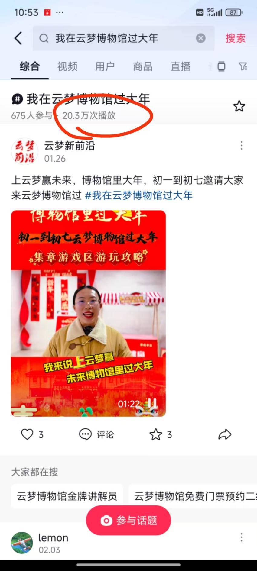 云梦县博物馆凭借其深厚的文化底蕴和趣味盎然的活动内容,吸引了10万余人次游客前来参观体验。家长带着孩子,年轻人陪着老人,大家在博物馆里认真聆听讲解,仔细观赏展品,积极参与互动,尽情感受传统文化的熏陶,度过了一个充实而有意义的春节。抖音上“我在云梦博物馆过大年”话题视频播放量高达20余万人次,引发了广泛的关注与讨论。