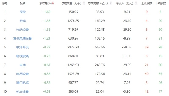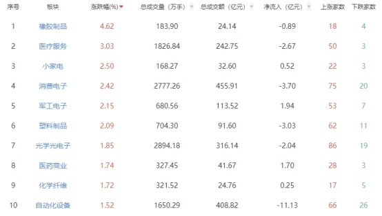 板块方面,橡胶制品、医疗服务、小家电等板块涨幅居前,保险、游戏、光伏设备等板块跌幅居前。