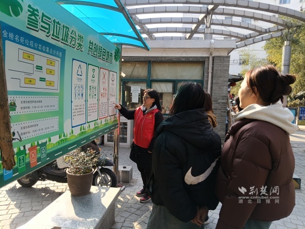 荆楚网(湖北日报网)讯(通讯员 余小颖 高俊)为深入推进垃圾分类工作,提高居民环保意识,2月20日,武昌区黄鹤楼街道读书社区联合黄鹤楼街城管执法中心在金榜名苑小区开展垃圾分类宣传与清洁家园志愿活动。