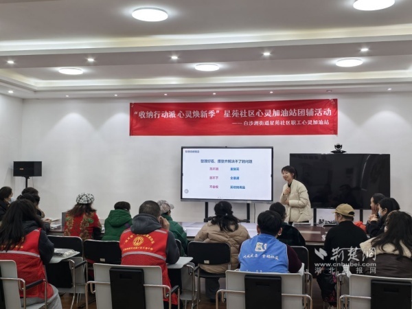 荆楚网(湖北日报网)讯(通讯员 闵国新)为切实关爱职工心理健康,满足退休职工精神文化需求,提升辖区职工群众幸福感,2月18日,武汉市武昌区白沙洲街道星苑社区联合工会在心灵加油站举办“收纳行动派 心灵焕新季”心理团辅活动,吸引辖区共建单位20余名退休女职工参与。