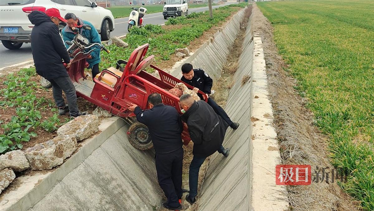 警民合力将老人和车辆从水沟中抬出(通讯员供图)