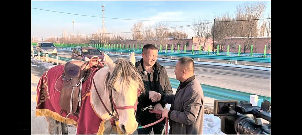 依立拜(左一)获赠赛里木湖白马 依立拜视频账号截图