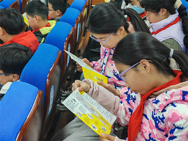 学生们认真阅读禁毒宣传资料。 通讯员供图