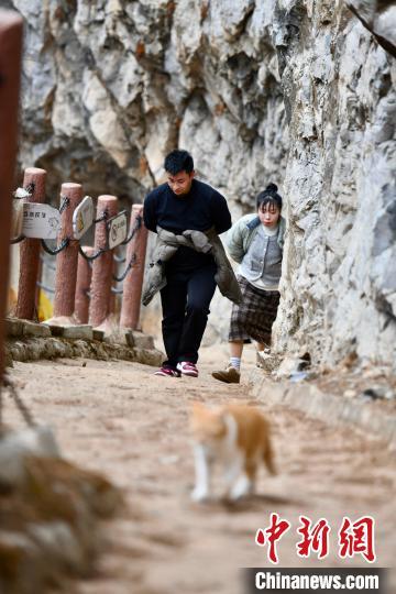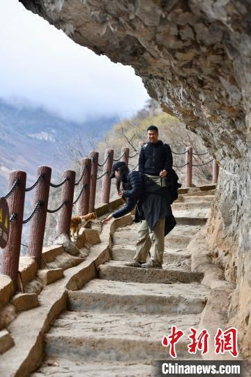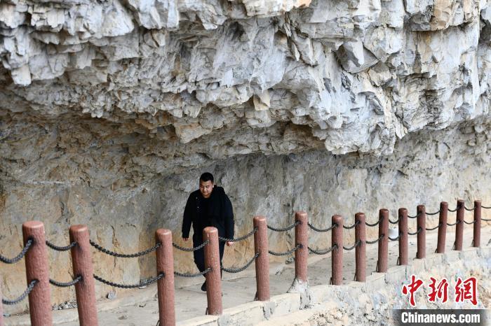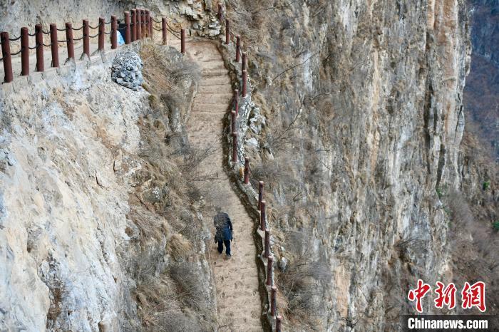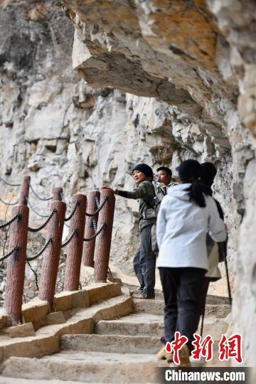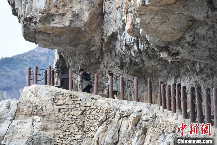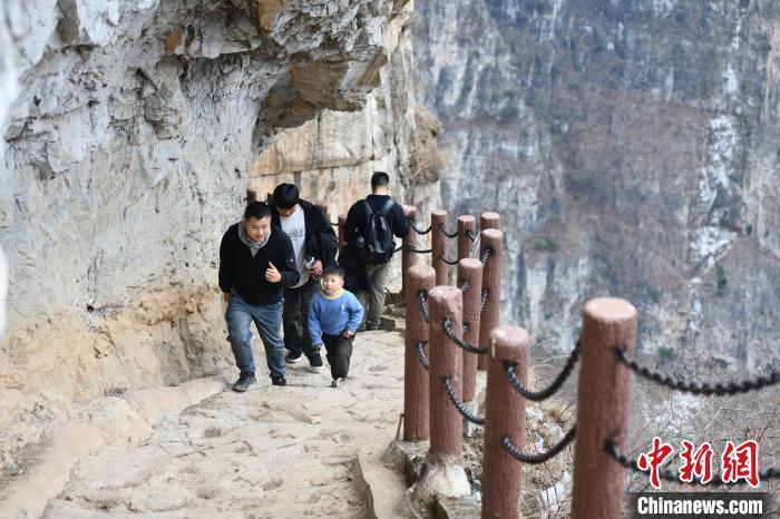2月21日,位于四川省雅安汉源县永利彝族乡古路村的骡马道吸引不少徒步游客。这条凿建在悬崖峭壁间、长8公里、不到1米宽的骡马道于20多年前建成,曾是村民进出山的唯一通道,伴随着高空索道的开通,村民从3小时的进出村时间缩短至5分钟,而昔日的骡马道如今成为游客的观光路。中新社记者 张浪 摄