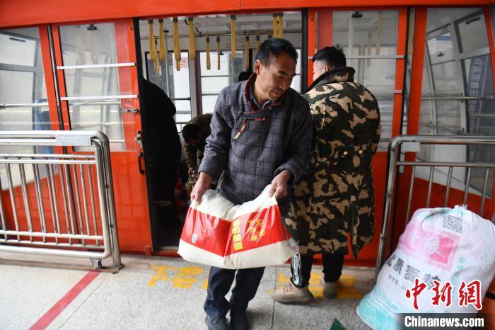 图为古路村村民的生活物资通过索道运到村里。中新社记者 张浪 摄