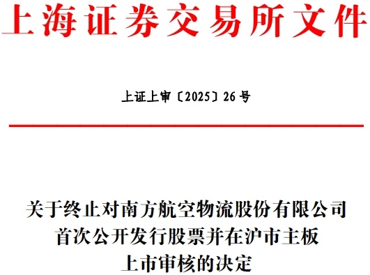 日前,南航物流和保荐人中国国际金融股份有限公司分别向上交所提交了《南方航空物流股份有限公司关于撤回首次公开发行股票并在主板上市申请文件的申请》和《中国国际金融股份有限公司关于撤回南方航空物流股份有限公司首次公开发行股票并在主板上市申请文件的申请》,申请撤回申请文件。根据《上海证券交易所股票发行上市审核规则》第六十三条的有关规定,上交所决定终止对南航物流首次公开发行股票并在沪市主板上市的审核。