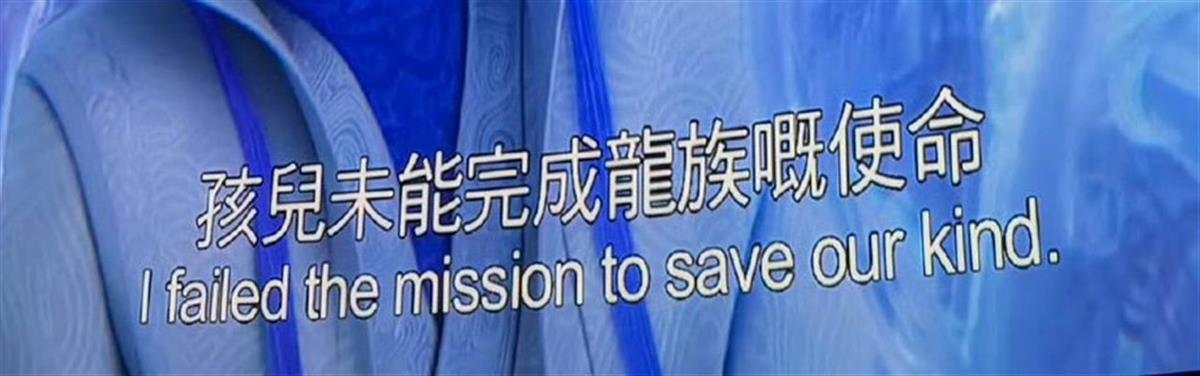从当地观众在社交平台的分享来看,《哪吒2》在香港上映的版本为普通话对白+粤语口语字幕。比如敖丙躺在父王怀抱里说“孩子没能完成龙族的使命”,港版字幕为“孩兒未能完成龍族嘅使命”;