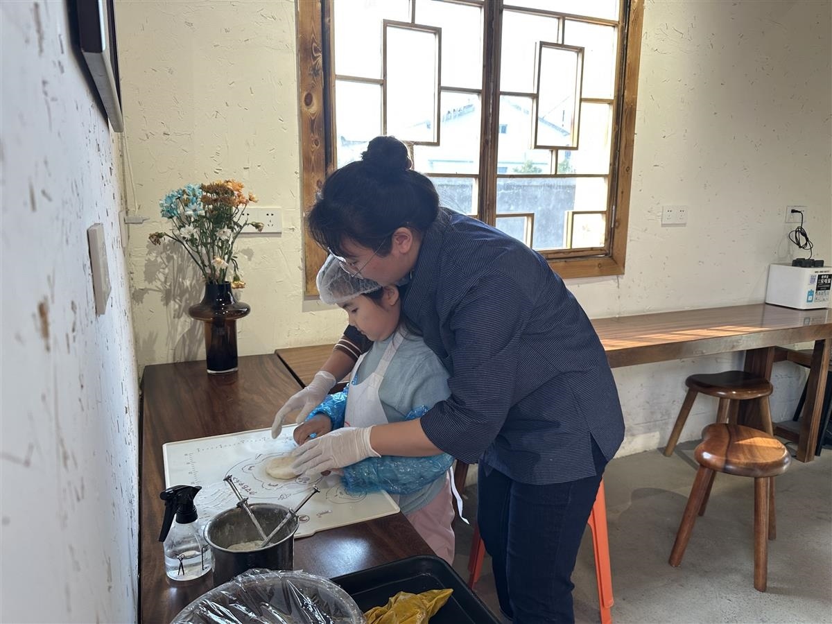 不仅窑烤面包受欢迎,葛悦琪开设的烘焙课也是爆火,每周末开三次课,每次最多限8人,也是需要“抢购”的。记者采访时,葛悦琪正在手把手教5岁多的来宝制作红豆馅面包。“一个小时98元,可以烤制3个面包,让女儿体验一下制作的乐趣,感觉很不错。”来宝的妈妈笑着说:“物有所值!”