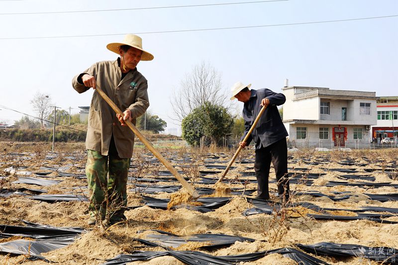 荆楚网(湖北日报网)讯(通讯员程晓林、邓小刚、马海飞)2月18日,在浠水县清泉镇张家坪村和桃树窝村近500亩的连片金银花种植基地,黄冈鹞柒茶食品有限公司雇请30多名当地村民,集中一周的时间有组织地对其两处基地进行一次除草、培土、补苗、施肥等春季田间管理。