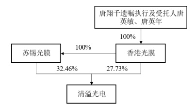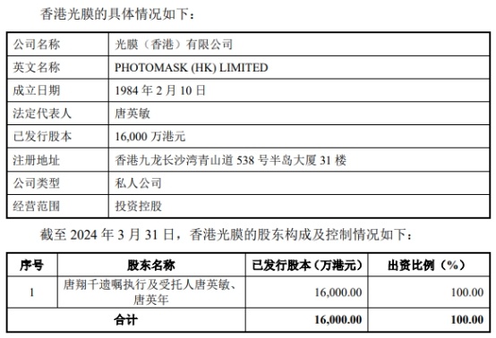 截至2024年3月31日,光膜(香港)有限公司(简称:香港光膜)直接持有公司73,977,300股,直接持股比例为27.73%,通过苏锡光膜间接持有公司86,613,600股股份,间接持股比例为32.46%,香港光膜合计持有公司股份比例为60.19%,为公司控股股东。