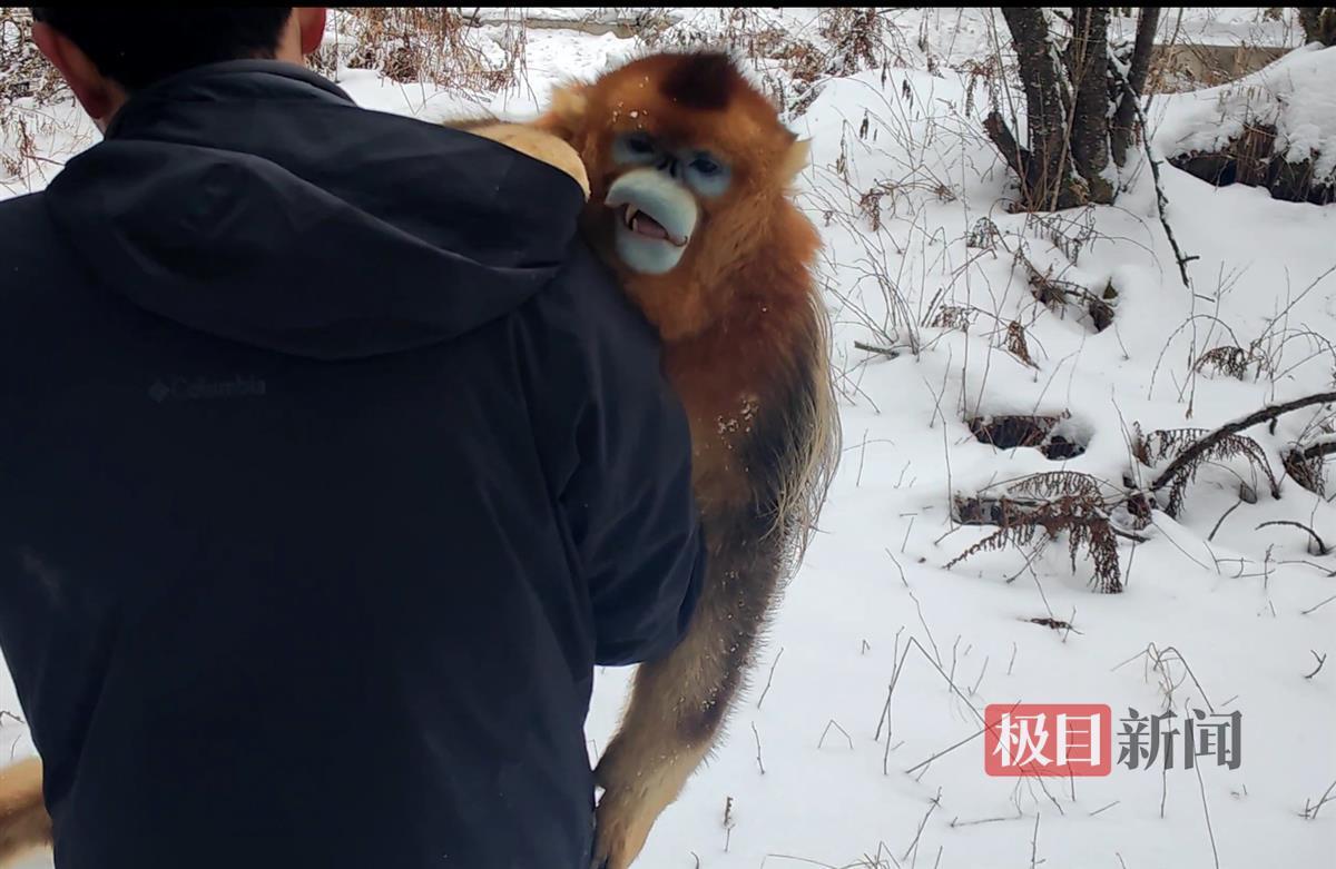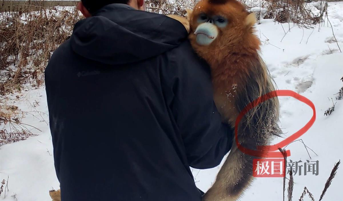 神农架国家公园管理局小龙潭救护站工作人员蒋军介绍,2月21日上午,有游客反映,在神农架红石沟发现一只行动异常的金丝猴。游客走近观察发现,这只金丝猴左前肢有伤口,长度约15厘米,情况不容乐观。随即,游客拨打了神农架国家公园科学研究院的电话。小龙潭救护站接到科学院信息,迅速派他与同事赵宠南前往救助。